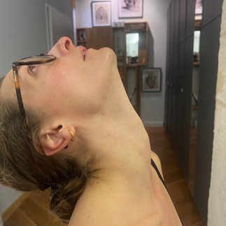 Ci-dessous une photo avant/pendant/après un toucher fascia qui a duré à peu près 20 minutes pendant ma formation. Je trouve le résultat assez parlant !